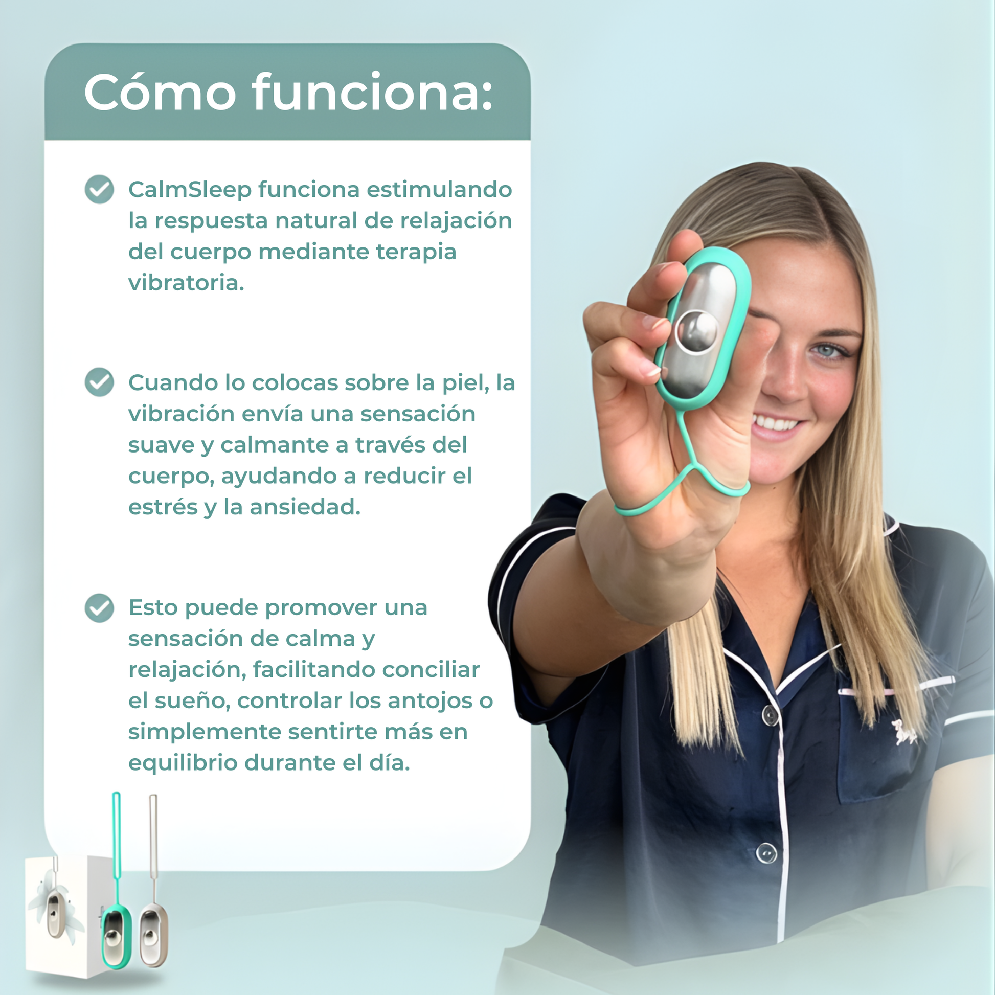 Diseñado para ofrecer simplicidad y comodidad, CalmSleep® lleva el poder de la acupresión y las suaves microcorrientes directamente a la palma de tu mano, ayudando a miles de usuarios a desconectar, calmar la mente y descansar profundamente.